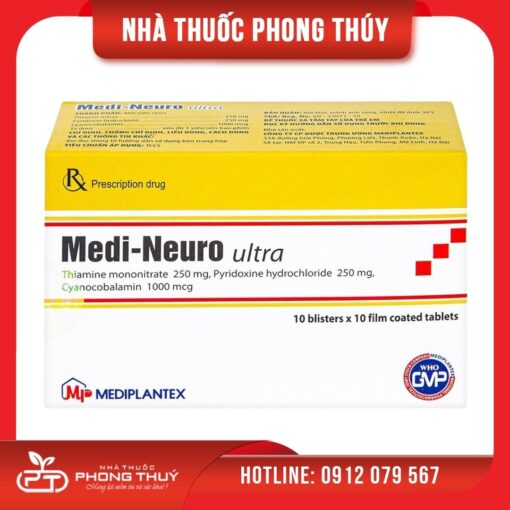 Ở liều cao, cobalamin có tác dụng giảm đau. Sự kết hợp của thiamin, pyridoxin và cobalamin trong Medi-Neuro ultra có tác dụng giảm đau thần kinh, giải độc và chống thiếu máu. Những vitamin này thường xuất hiện cùng với nhau trong các nguồn tự nhiên hỗ trợ cho nhau trong quá trình chuyển hóa tế bào, đặc biệt là hệ thần kinh. Do đó, việc điều trị bằng Medi-Neuro ultra sẽ hiệu quả hơn và tiện lợi hơn so với việc dùng riêng rẽ các vitamin.