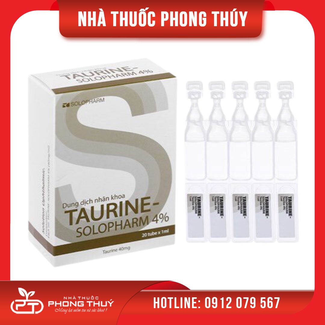 Dung dịch Taurine 4% được sử dụng trong điều trị bệnh nhân khi bị loạn dưỡng giác mạc; viêm giác mạc, bệnh suy yếu và chấn thương mắt, đục thủy tinh thể (do tuổi già, bệnh tiểu đường, chấn thương, bức xạ); chấn thương giác mạc, viêm giác mạc (như là một chất kích thích các quá trình phục hồi do tổn thương giác mạc, bệnh nhân mổ mộng, loạn dưỡng giác mạc sau mổ, tái tạo biểu mô giác mạc trong viêm loét giác mạc cũng như loại bỏ sự rối loạn chuyển hoá của tế bào mắt, bình thường hoá chức năng màng tế bào, tối ưu hoá các quá trình tạo năng lượng và trao đổi chất); biểu hiện đầu tiên của bệnh tăng nhãn áp (kết hợp với β-blockers để cải thiện dòng chảy của dịch chất lỏng trong nhãn cầu). Phòng và phối hợp điều trị bệnh cận thị, khô mắt, làm giảm các triệu chứng khô mất, nóng rát, mỏi mắt do khói bụi, máy điều hòa nhiệt độ, sử dụng máy tính, điện thoại trong thời gian dài, những người thường xuyên đeo kính áp tròng.
