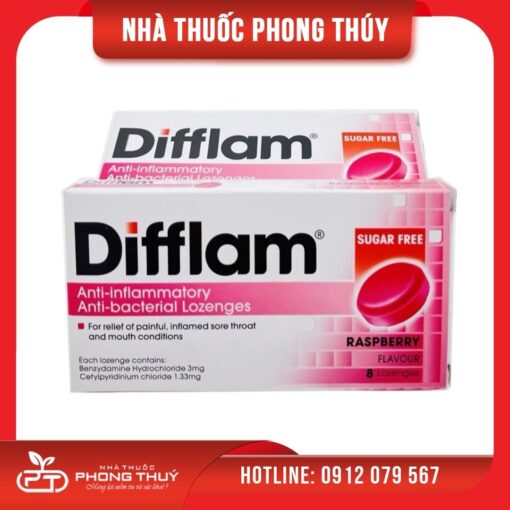 Viên ngậm giảm ho và ngứa họng vị dâu rừng, không đường Difflam (8 viên)